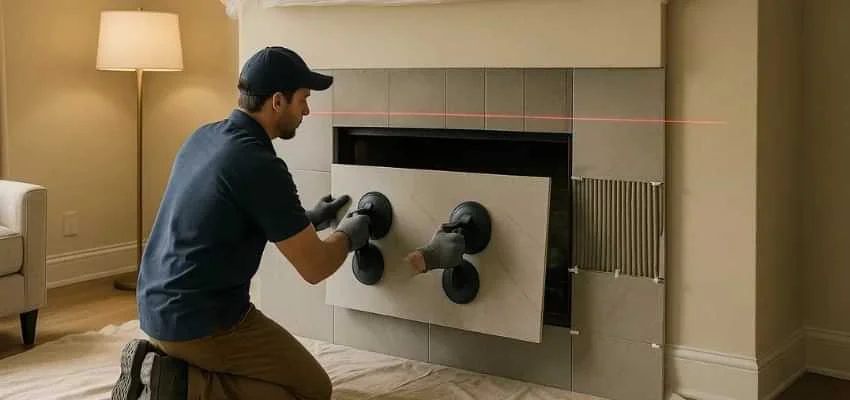 A face refresh changes the mood without a full rebuild. We select heat capable backers, keep joints tight, and align courses carefully so textures read clean from across the room in Addison Circle, Addison.